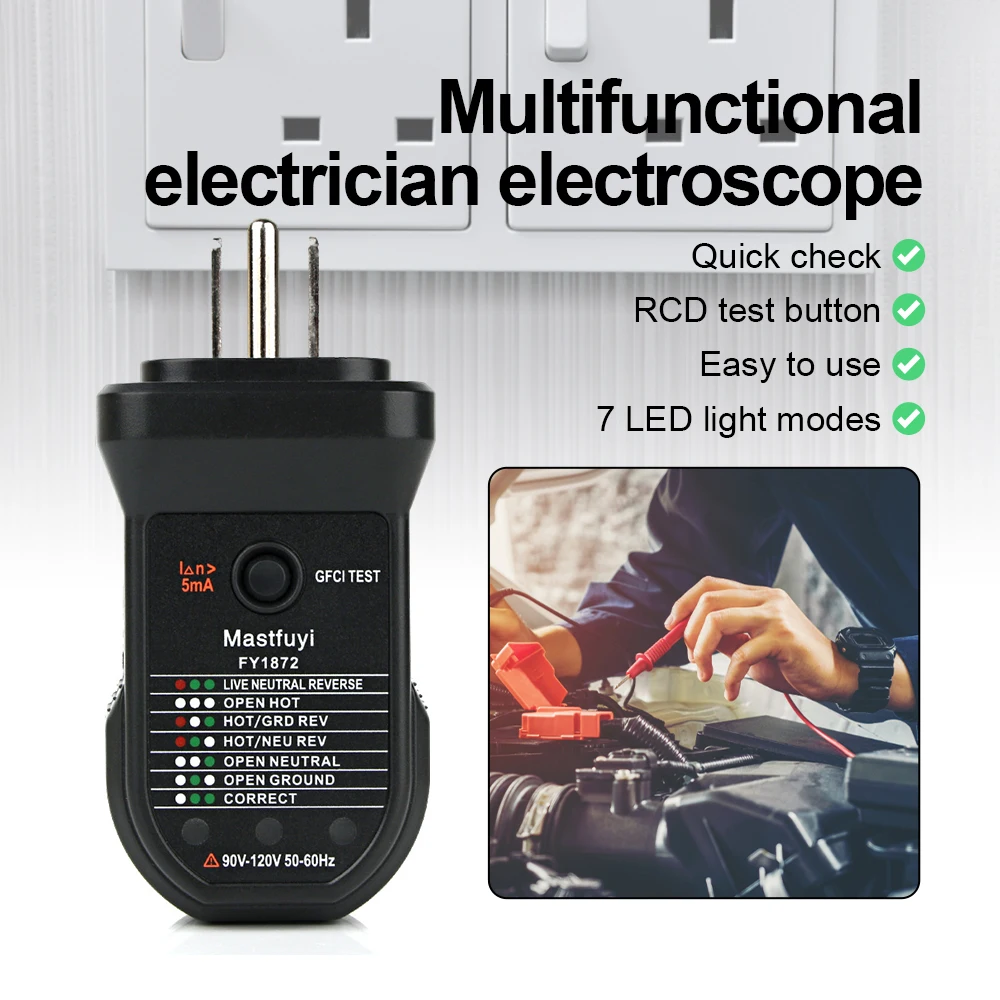 Электрический тестер RCD для розеток, автоматический нейтральный детектор полярности заземления, для проводов под током, с вилкой Стандарта ...
