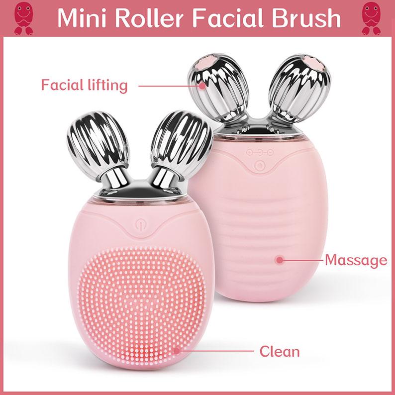 Электрическое силиконовое очищающее средство для лица с роликовой конструкцией, которое подтягивает и подтягивает контуры лица, а также очищает лицо.