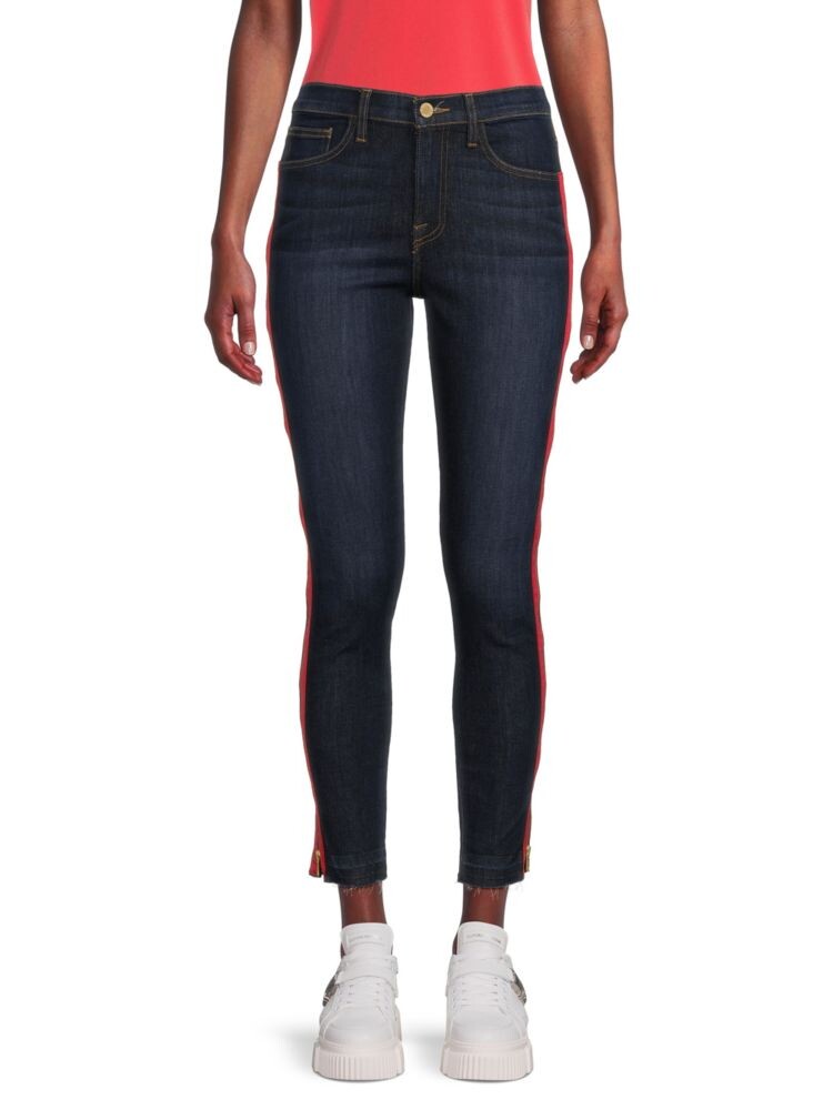 Укороченные джинсы скинни со средней посадкой и полосками по бокам Etienne Marcel, индиго