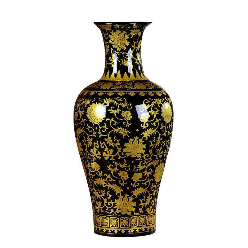 Эмалированная ваза рыбий хвост Цзиндэчжэнь, керамическая черная Золотая антикварная большая ваза, товары для дома, мебель для гостиной