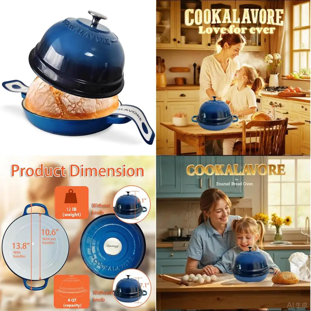 Эмалированная печь для хлеба, емкость 6 литров, диаметр 10,5 дюйма, синяя, идеально подходит для выпечки на тыкве и домашней выпечки хлеба