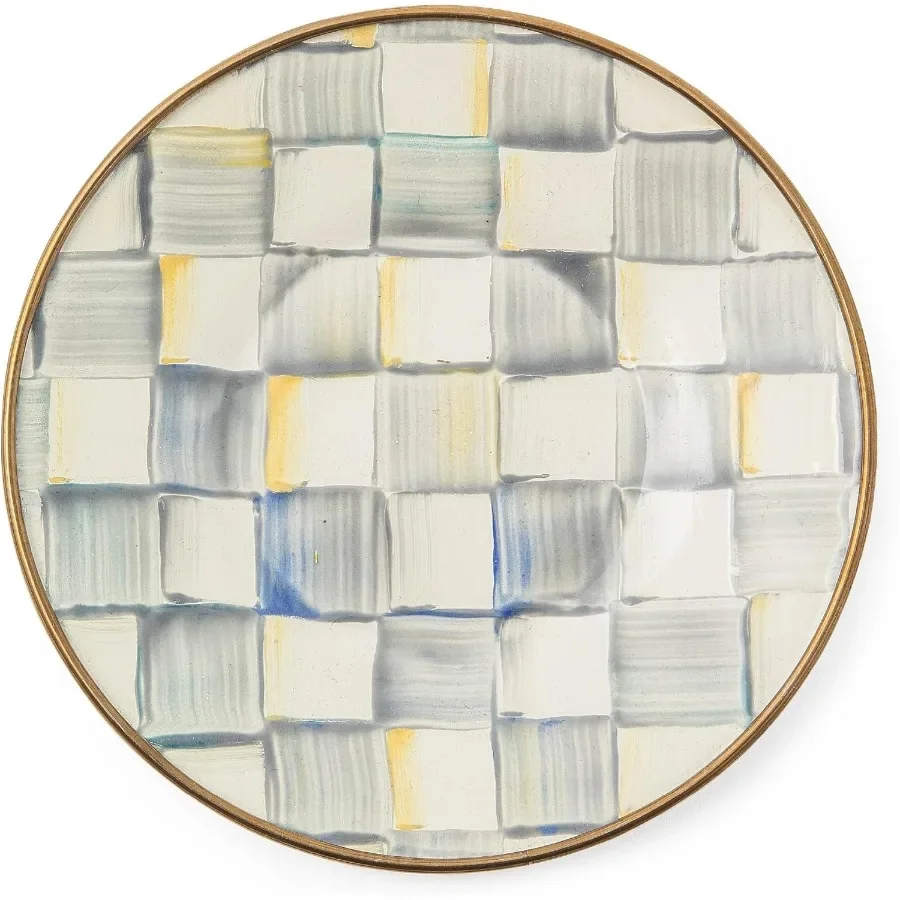 Эмалированная тарелка, маленькая эмалированная тарелка для чайных чашек, серо-белая, стерлинговая клетка