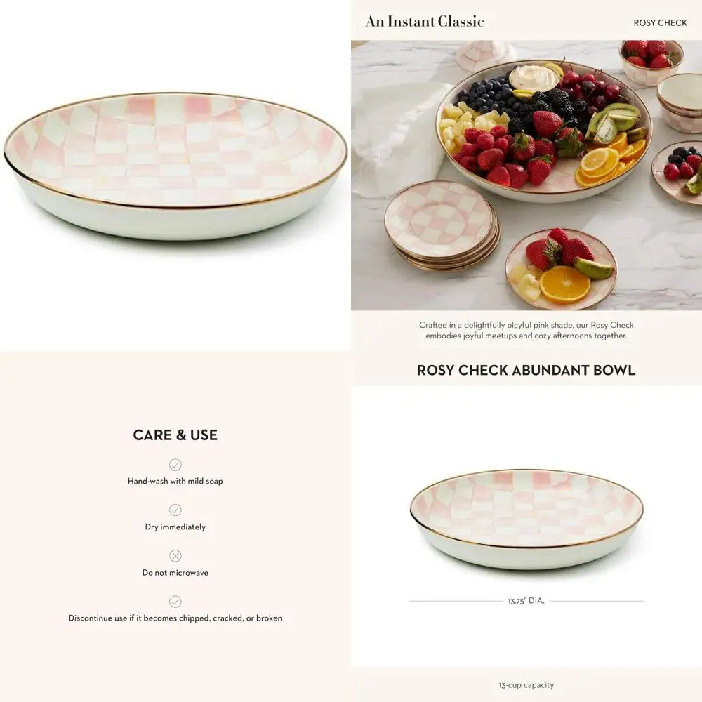 Эмалированная чаша для поглощения, декоративная или сервировочная, 13 чашек, клетчатый узор «Розовый и белый розовый», миска большой вместимости