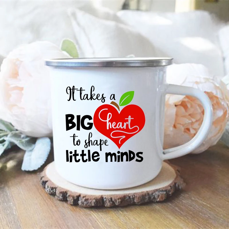 Эмалированная чашка для учителей, кружка с большим сердцем для придания формы маленьким умам, креативные чашки для воды для учителей и школы, кофейные кружки, подарок на День учителя