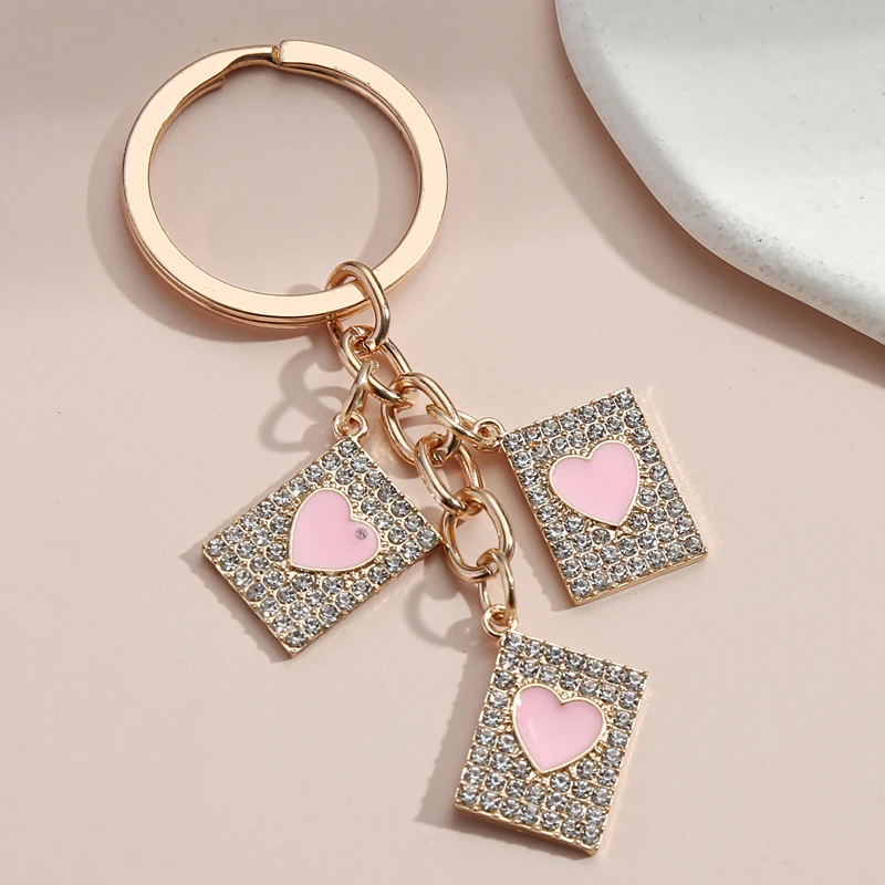 Эмалированный брелок, прямоугольные бусины, сердце, кольцо для ключей, любовь, цепочки для ключей, подарок на День святого Валентина для жен...