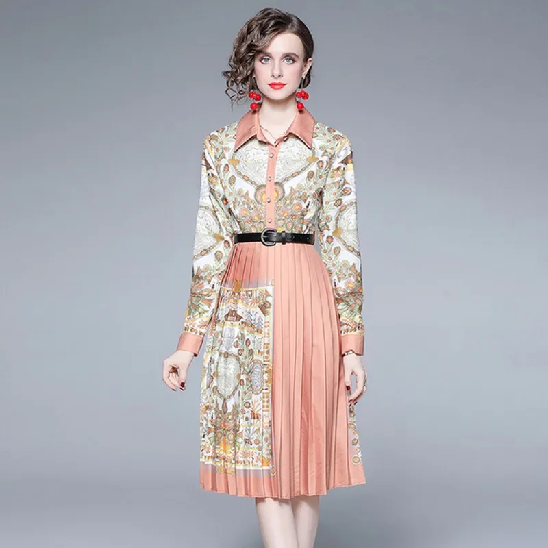 Hsa 2022 европейский и американский стиль, Осеннее женское новое платье с длинным рукавом и цветочным принтом, вечерние платья Vestdiso, плиссирова...