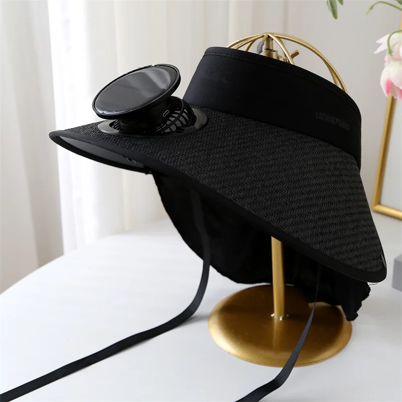 Энергия/USB-вентилятор Солнцезащитная шляпа Женская с широкими полями Солнцезащитная шляпа с защитой от солнца и ультрафиолета Летняя пустая кепка с большими полями Открытый велосипедный козырек для лица