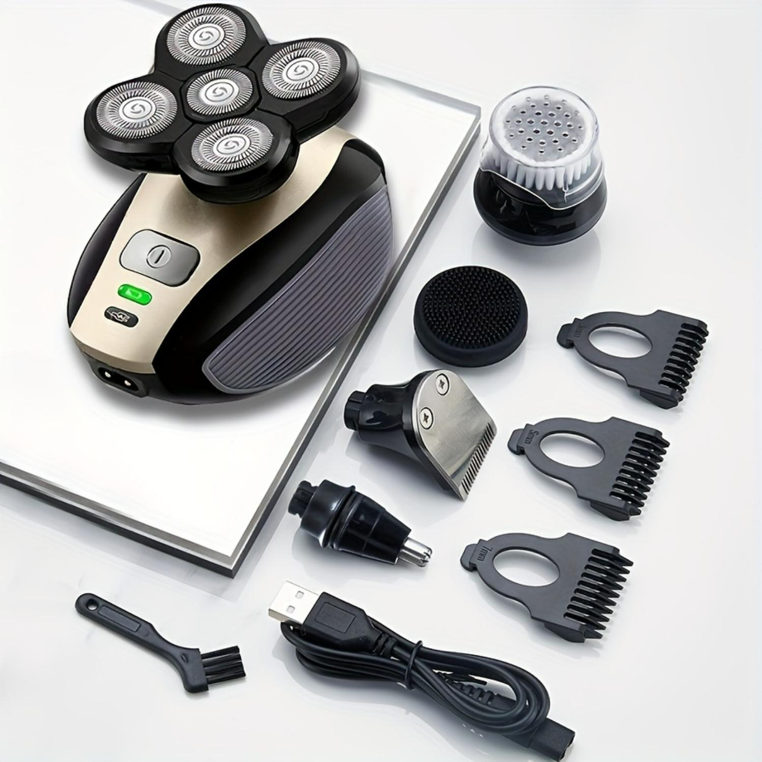 Эргономичная перезаряжаемая многофункциональная мужская бритва 5-в-1 - Основы для влажного/сухого бритья для ухода за лысой головой