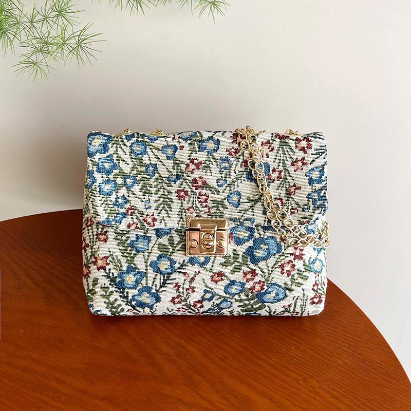 Эстетичный темперамент, модная текстура с принтом, повседневная и легкая летняя популярная универсальная цепочка, сумка через плечо, маленькая квадратная сумка. синий