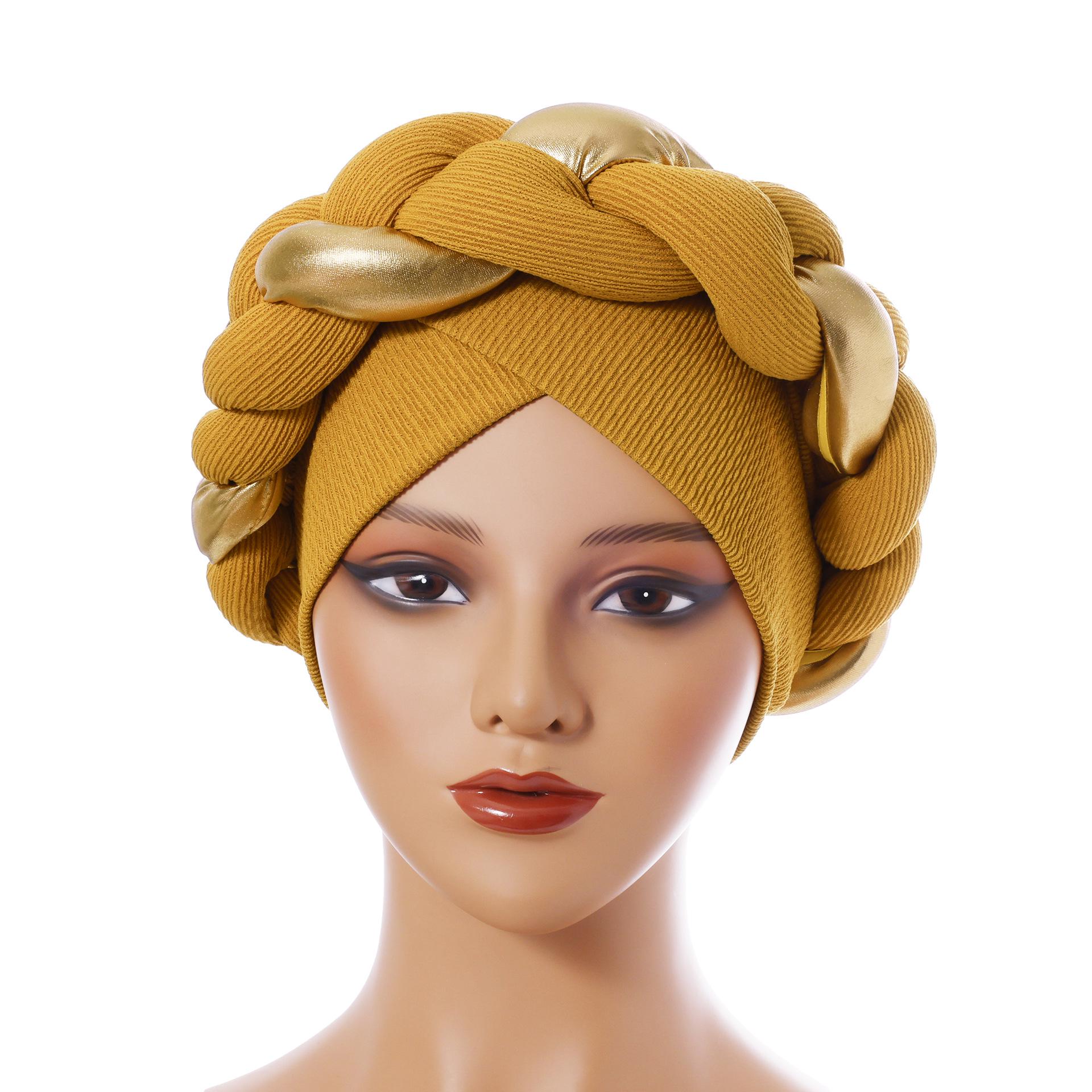 Этническая повязка на голову с перекрученным цветным блоком для женщин - Объемная коса, перекрученная, крестообразная шапка и повязка на голову One Size жёлтый