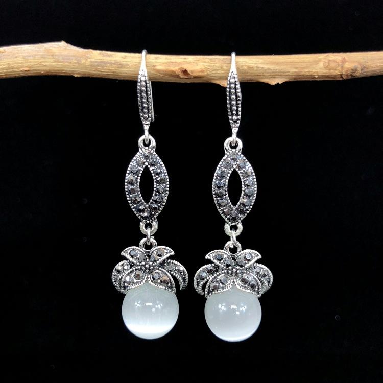 Этнический стиль ретро мода агатовые серьги женские простые темпераментные опаловые бриллиантовые серьги универсальные длинные украшения для ушей