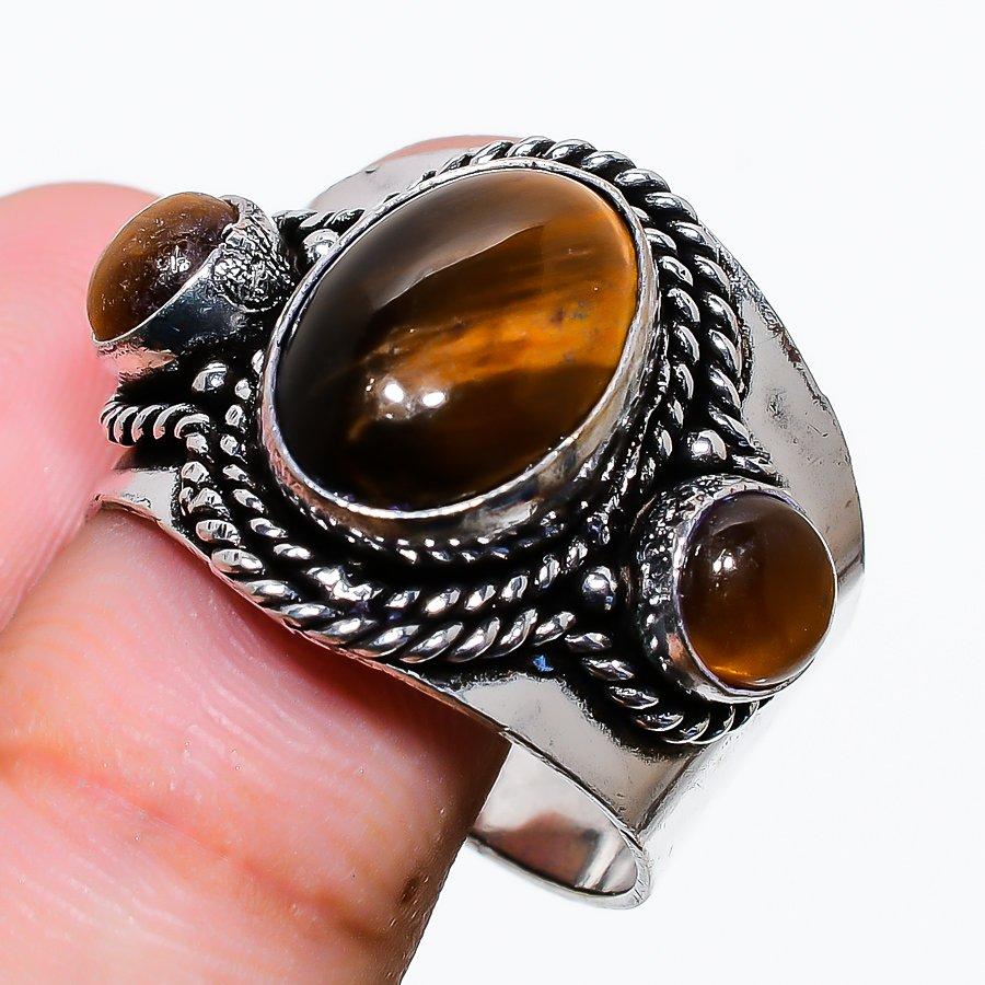 Этническое ювелирное кольцо ручной работы с драгоценным камнем «Тигровый глаз», регулируемый размерSR-2793