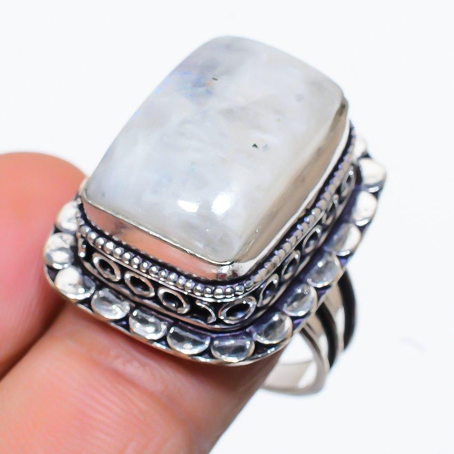 Этническое ювелирное кольцо ручной работы с радужным лунным камнем, размер 8,5 SR-10253