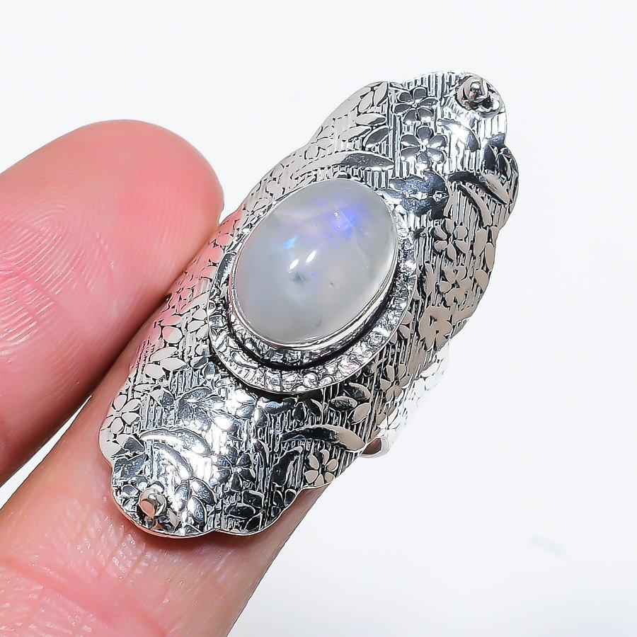 Этническое ювелирное кольцо ручной работы с радужным лунным камнем, размер 9,5 VM-759