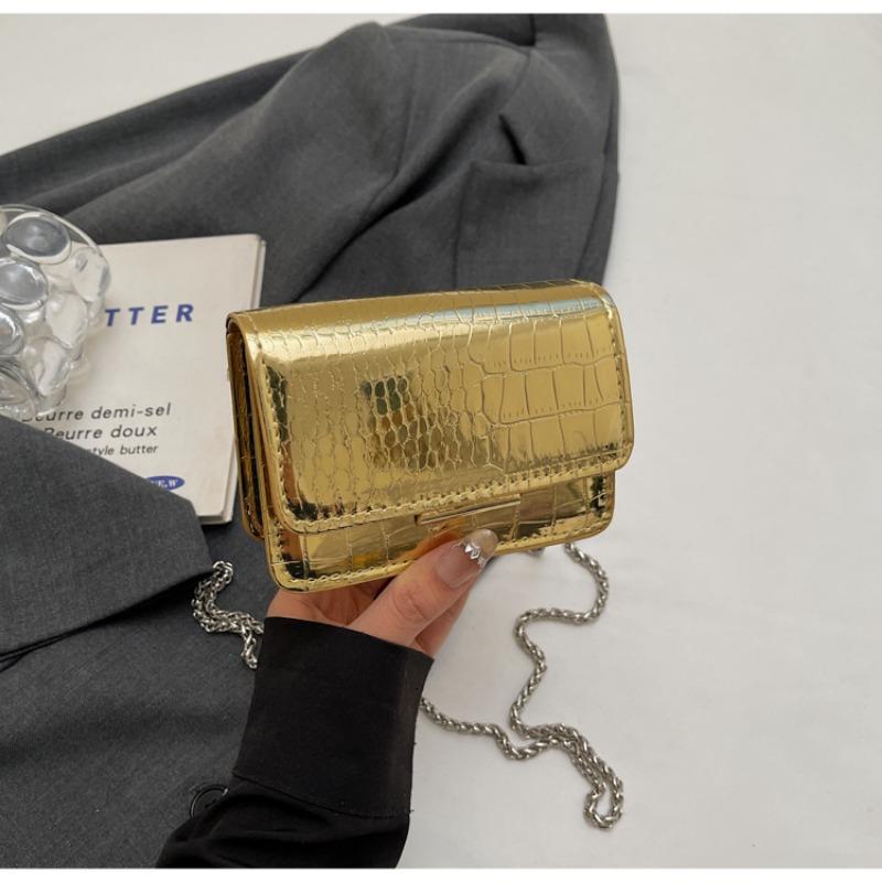 Это модная и стильная летняя квадратная сумка с крокодиловым узором и глянцевым дизайном на одно плечо. золотой