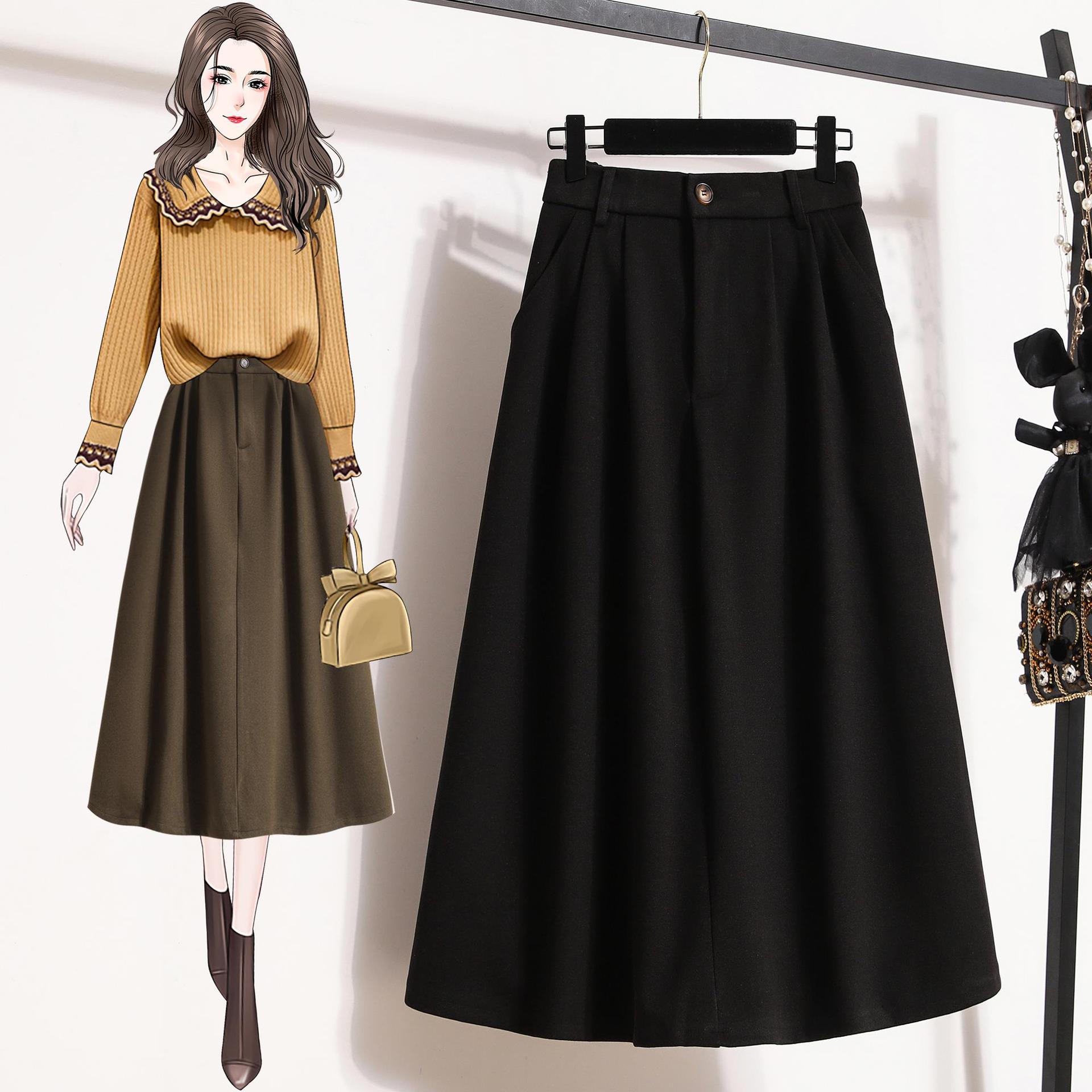 Юбка А-силуэта большого размера для женщин на осень и зиму, новая юбка в стиле ретро с высокой талией, облегающая, средней длины, выше колена, закрывающая бедра 3XL