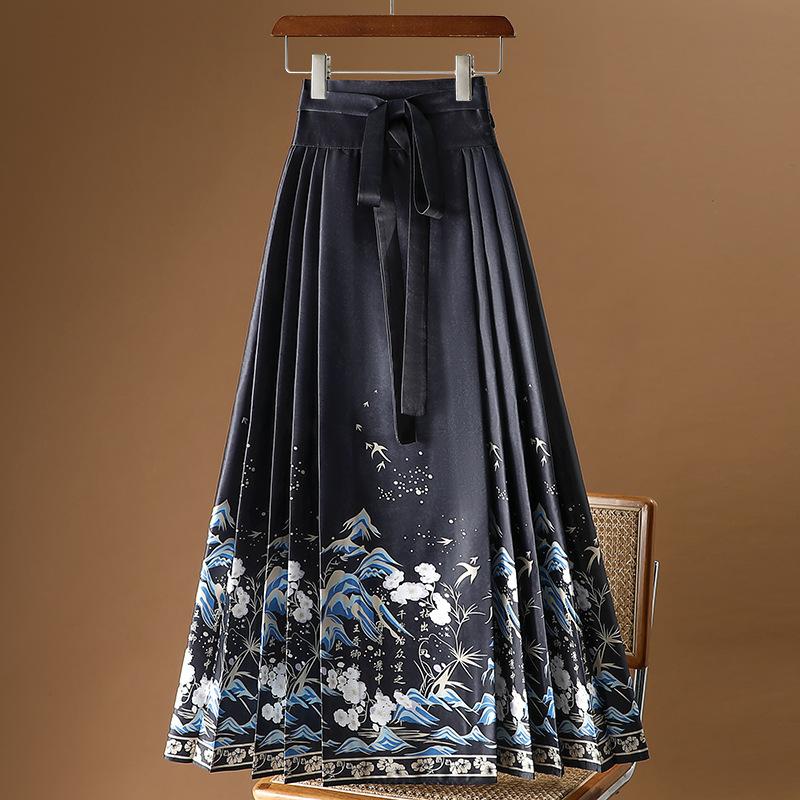 Юбка в китайском стиле с изображением лошадиной морды, женская цельная длинная юбка на весну и осень, плиссированная юбка ханьфу One size