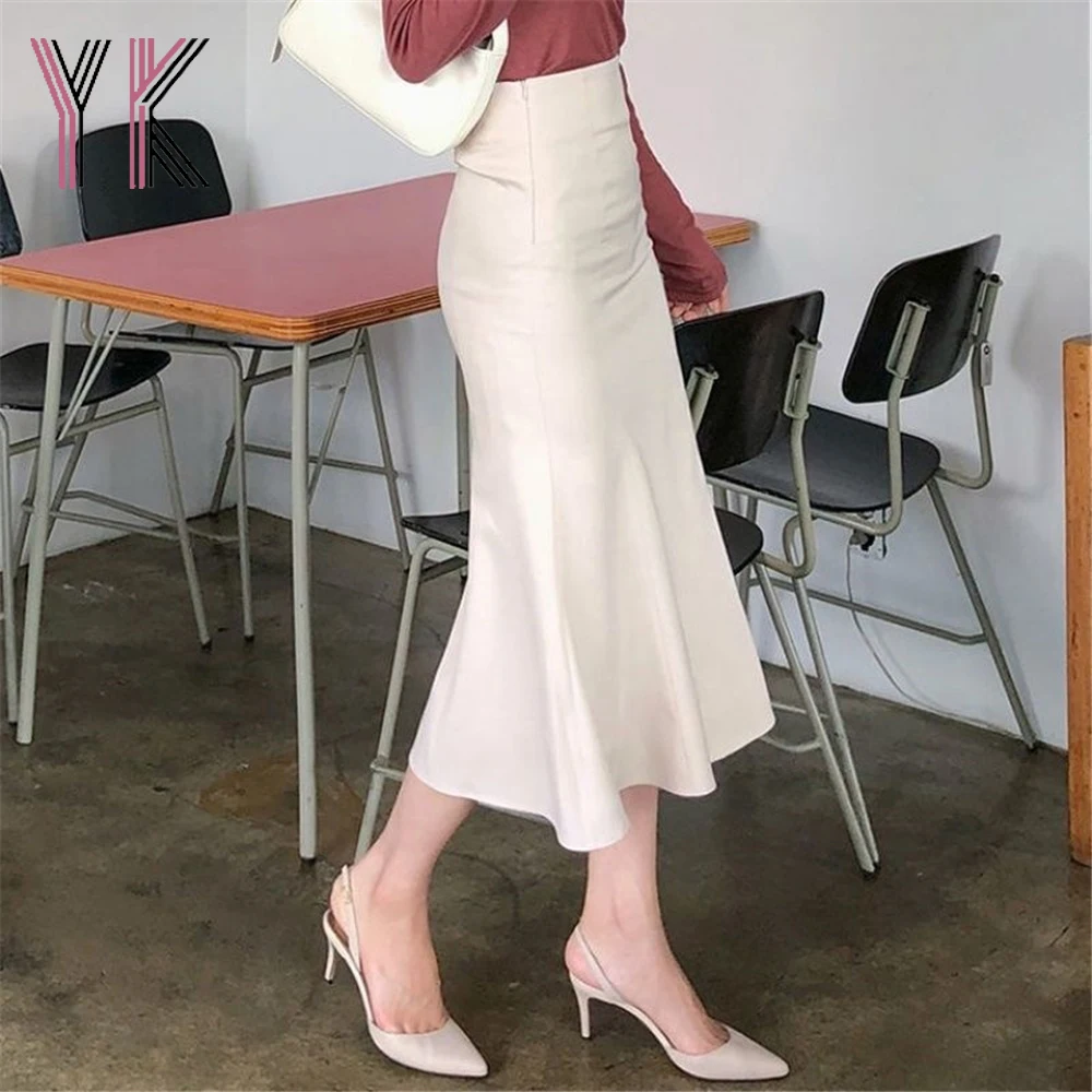Юбка-годе Женская средней длины с оборками, однотонная офисная элегантная винтажная юбка с завышенной талией, чёрная белая, в Корейском сти...