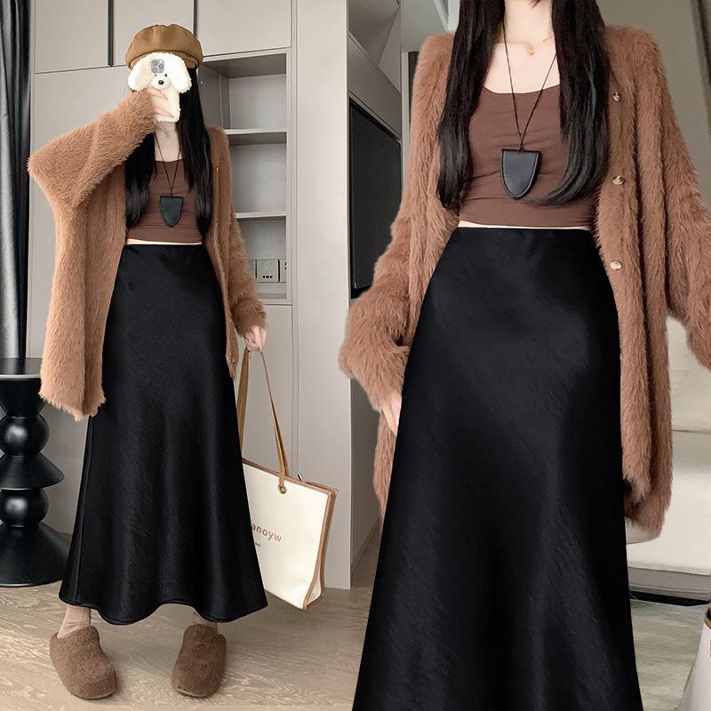 Юбка-годе из атласа для инфлюенсера 2024: Приятный к коже, на флисовой подкладке, эластичная талия, облегающая бедра миди-длина S