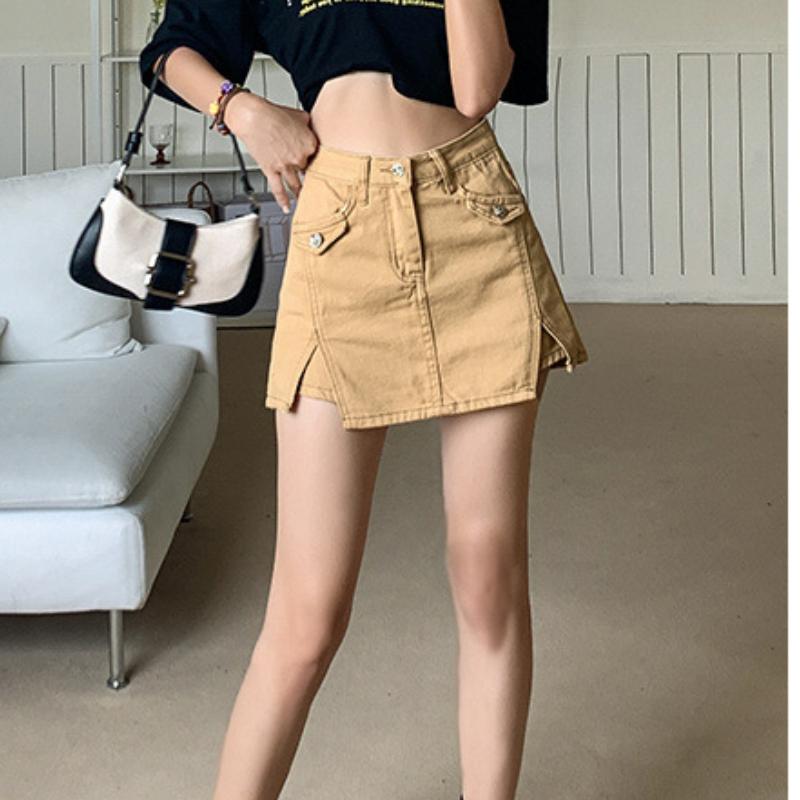 Юбка джинсовая женская летняя тонкая новая маленькая с разрезом средней длины с завышенной талией XXL
