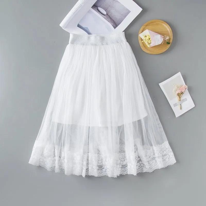 Юбка для девочек, кружевная сетка, тонкая черная плиссированная юбка, длинная юбка с навершием 160 чёрный