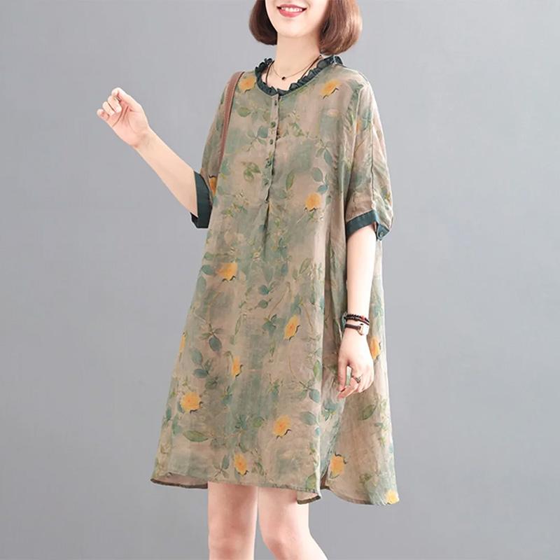 Юбка для женщины Лен Летняя Большого размера Свободная Цветочная Винтажная Однотонная Юбка Повседневная С принтом Мягкая Длинная Праздничная M зелёный