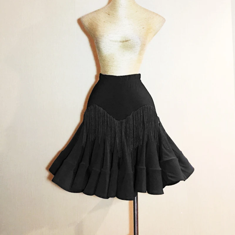 Юбка для латиноамериканских танцев женское черное платье с бахромой для тренировок Профессиональные платья для латиноамериканских соревн...