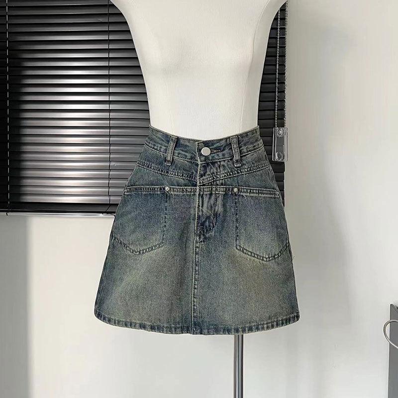 Юбка для стройности и стройности, с разрезом на кармане, с высокой талией, А-силуэта, облегающая бедра, винтажная юбка, женская летняя модная джинсовая короткая юбка S синий