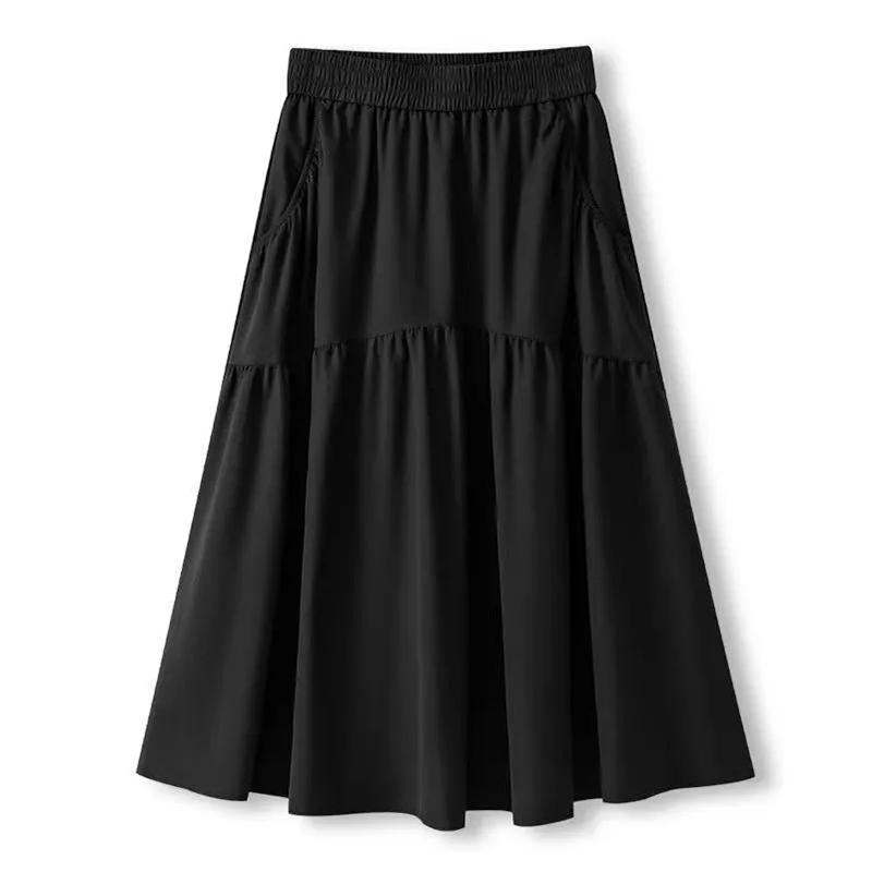 Юбка женская летняя повседневная универсальная эластичная с высокой талией свободная юбка-бюстье большого размера эластичная тонкая однотонная платья XXXL чёрный
