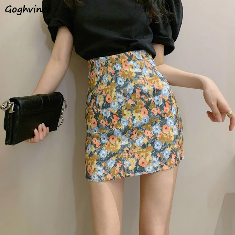 Юбка женская с цветочным принтом, шикарная элегантная цветная мини-юбка-футляр в стиле ретро, универсальная уличная одежда для вечеринок