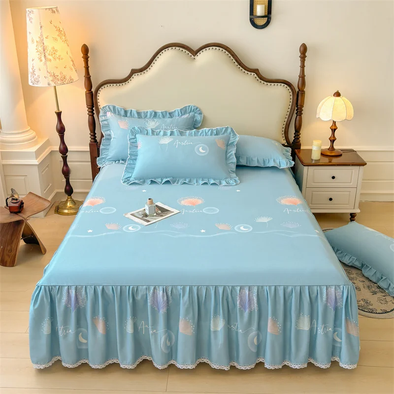 Юбка-кровать с принтом Bonenjoy, приятное для кожи покрывало из чистого хлопка, защитная юбка для матраса, стильная простыня 침대스커트 (без наволочки)