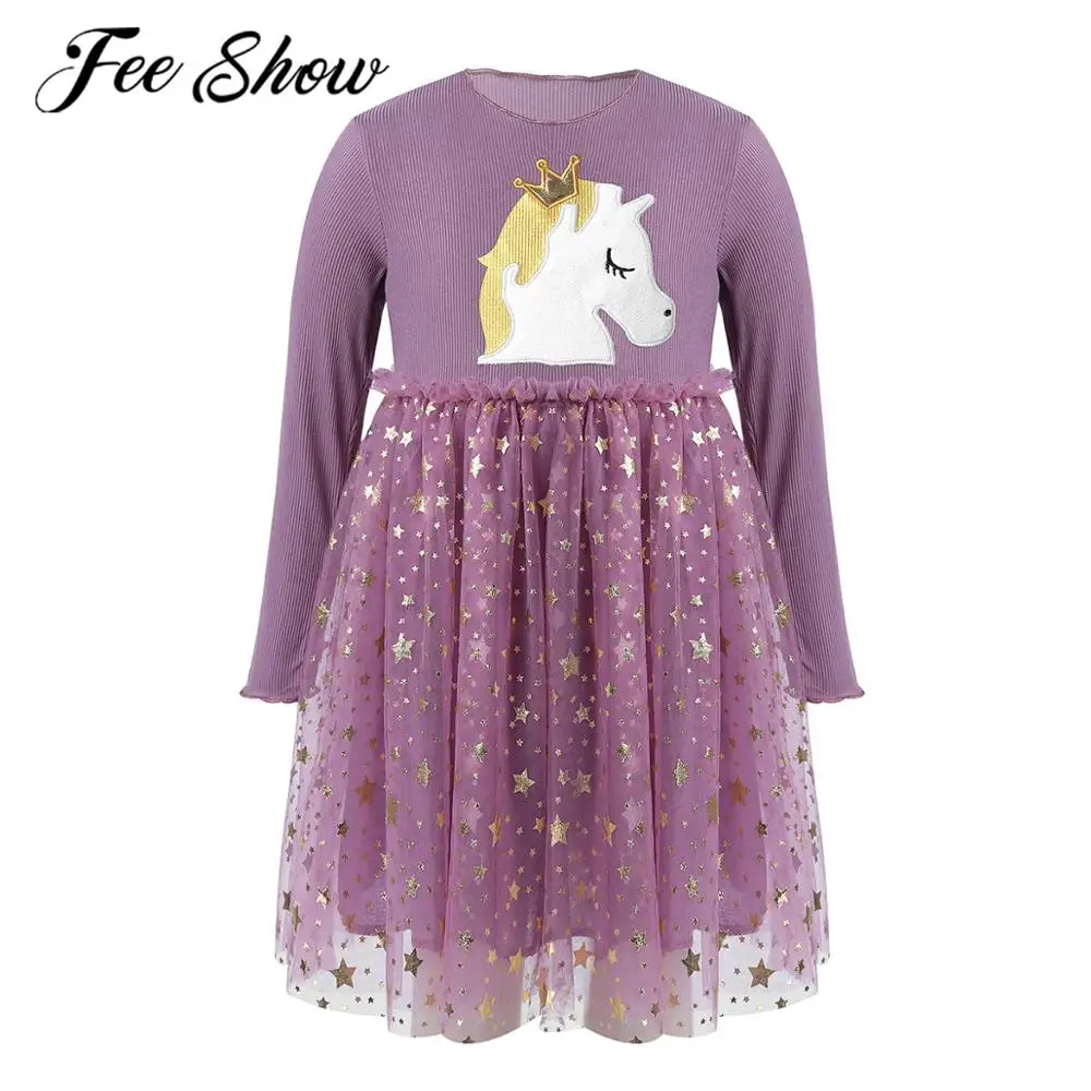 Юбка-пачка для девочек; Бальное платье с длинными рукавами на осень с изображением героев из мультфильмов, с лошадкой, принт со звездой, ажур...