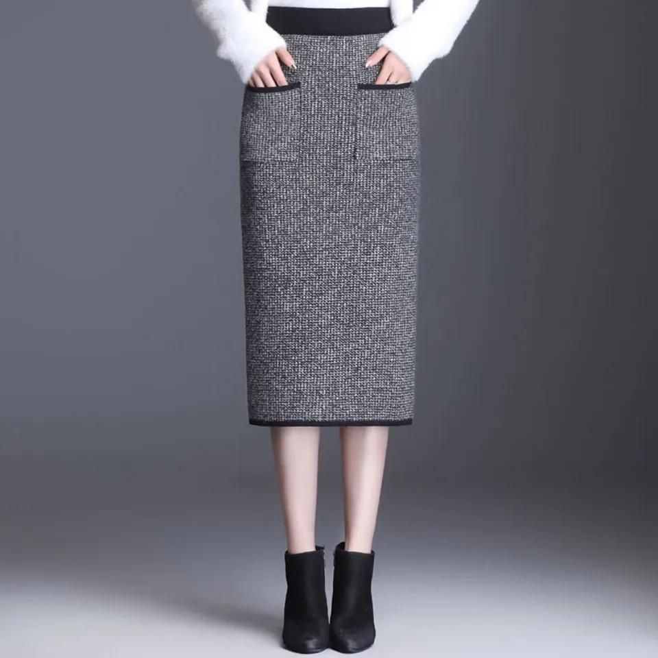 Юбка средней длины, утолщенная, женская, осенне-зимняя, выше колена, трикотажная, с поясом-резинкой, универсальная, с одним швом XXXL серый