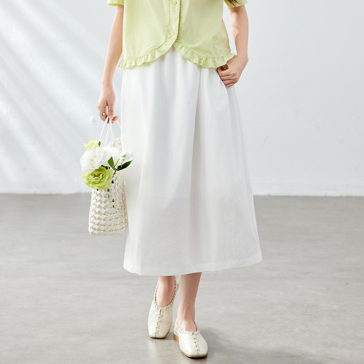 Юбка с высокой талией Женская Летняя Новая Дышащая Милая Свободная Юбка-трапеция Средней Длины Юбка-трапеция M белый