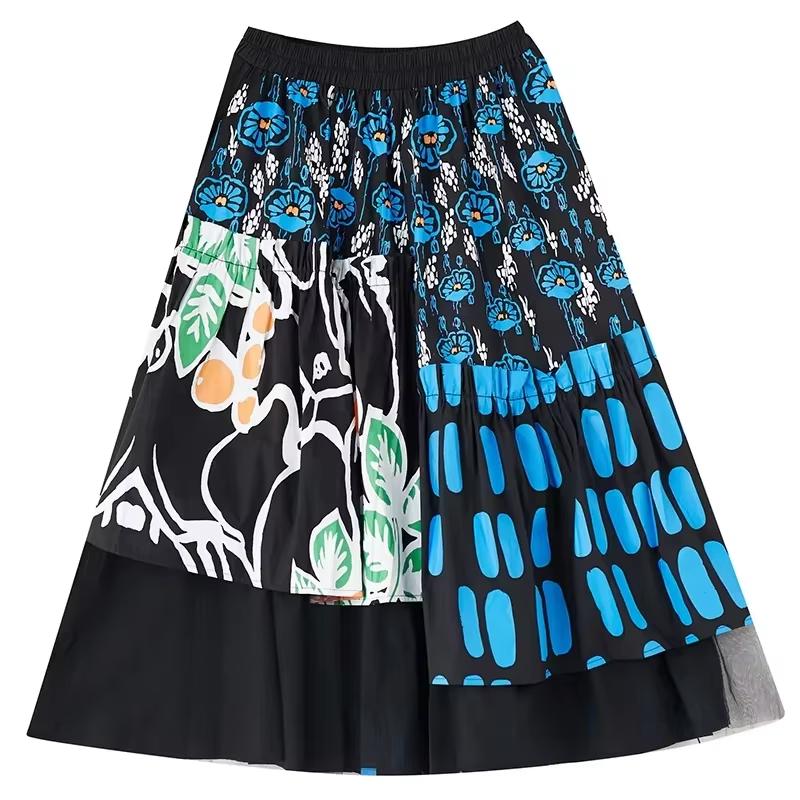 Юбка с эластичной талией и принтом в стиле пэчворк из сетки XITAO GMM1320 One Size чёрный