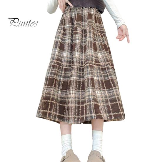 Юбка шерстяная с высокой талией, женская клетчатая юбка с оборками и строчкой, юбка-трапеция, осенне-зимняя шерстяная юбка на каждый день L кофейный