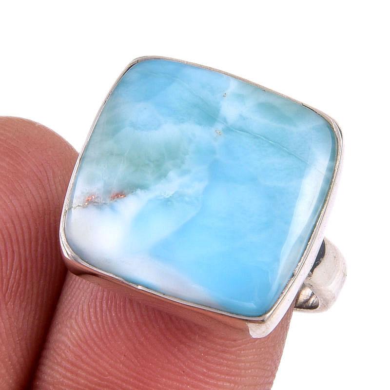 Ювелирное кольцо из натурального серебра 925 пробы с драгоценным камнем Ларимар, размер 7,5 M8S95