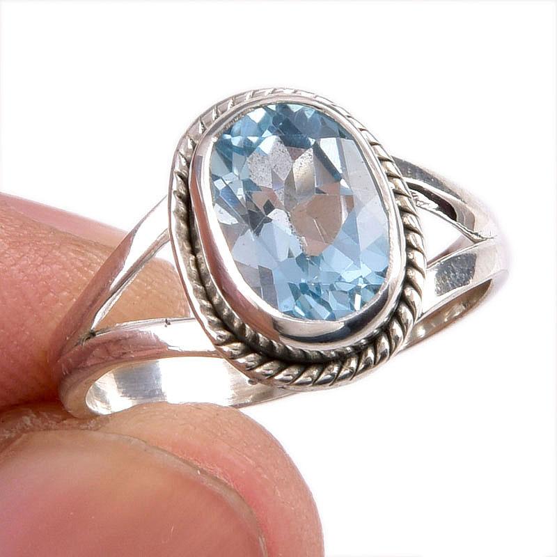 Ювелирное кольцо из натурального синего топаза ручной работы из цельного серебра 925 пробы, размер 6,5 b7t15