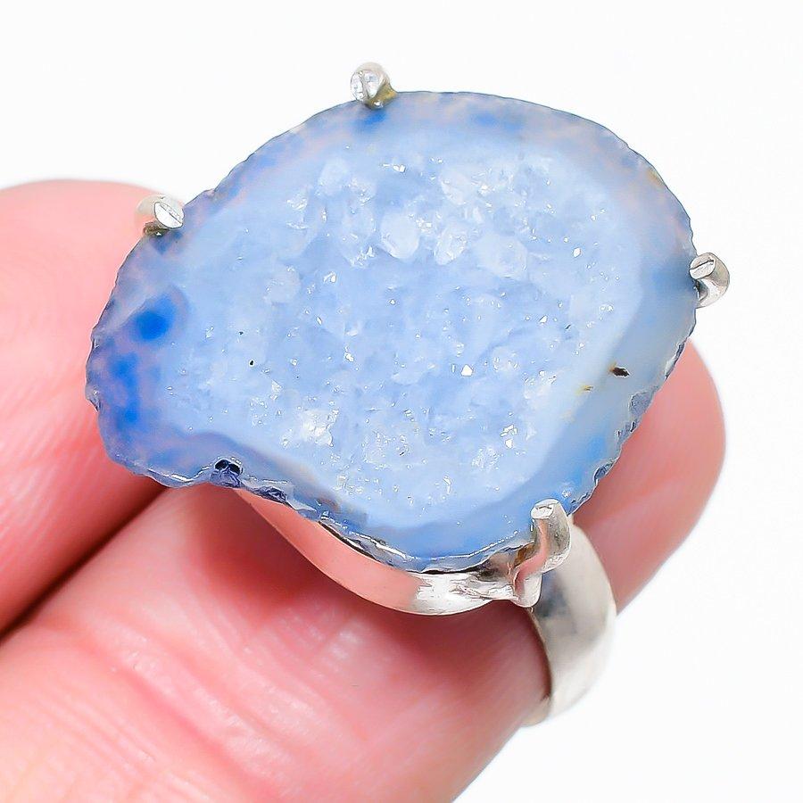 Ювелирное кольцо из стерлингового серебра 925 пробы с агатом и жеодой, размер 7 d2a58