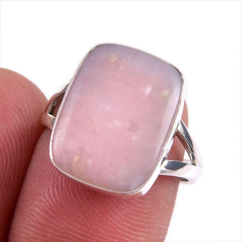 Ювелирное кольцо из чистого серебра 925 пробы с натуральным розовым опалом, размер 7 v3D83