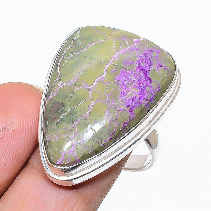 Ювелирное кольцо ручной работы из стерлингового серебра 925 пробы с натуральным пурпуритом, размер 9 l4A71