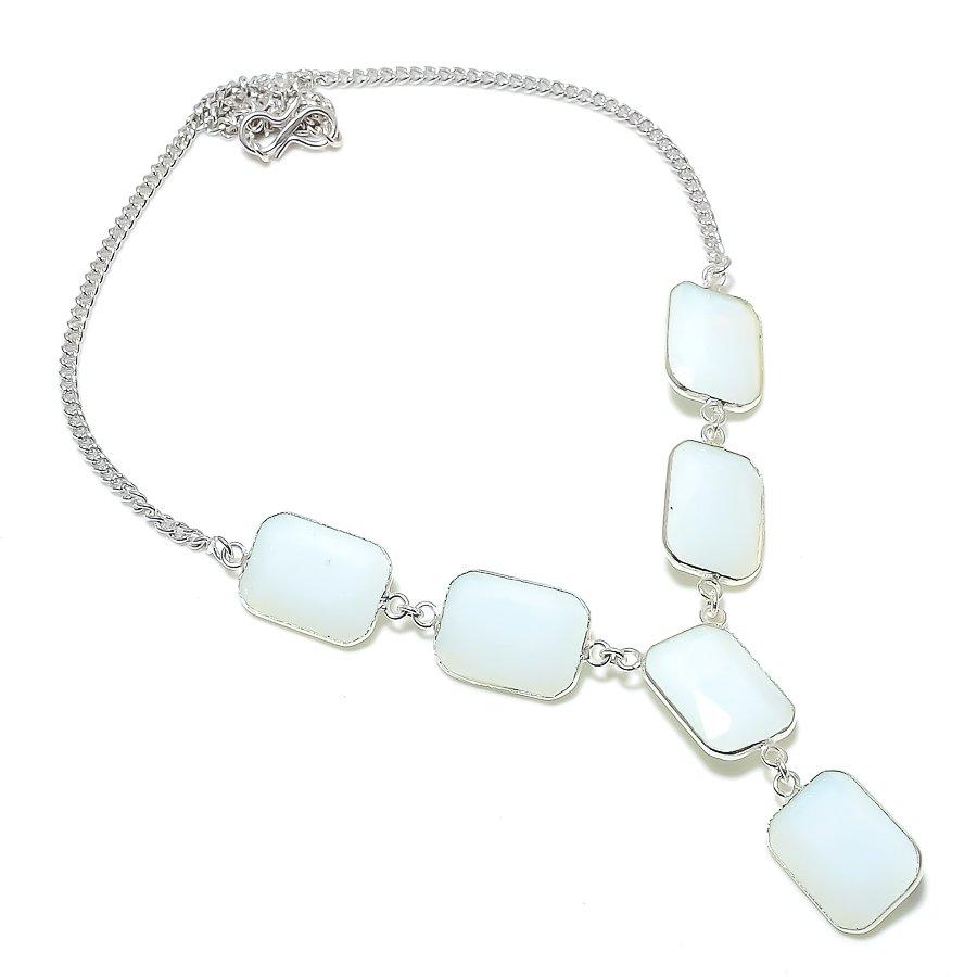 Ювелирное ожерелье из стерлингового серебра 925 пробы с натуральным молочным опалом 18 дюймов z6W20