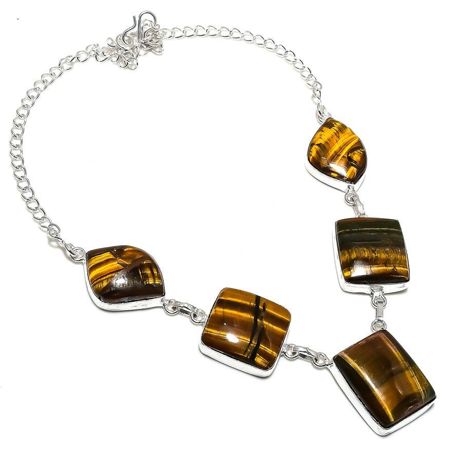 Ювелирное ожерелье из стерлингового серебра 925 пробы с натуральным тигровым глазом 18 дюймов q8M64