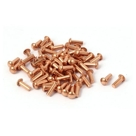 Unique Bargains 3mm x 8mm Round Shaft Copper Solid Rivets Fasteners Hardware Gold Tone 60 Pcs