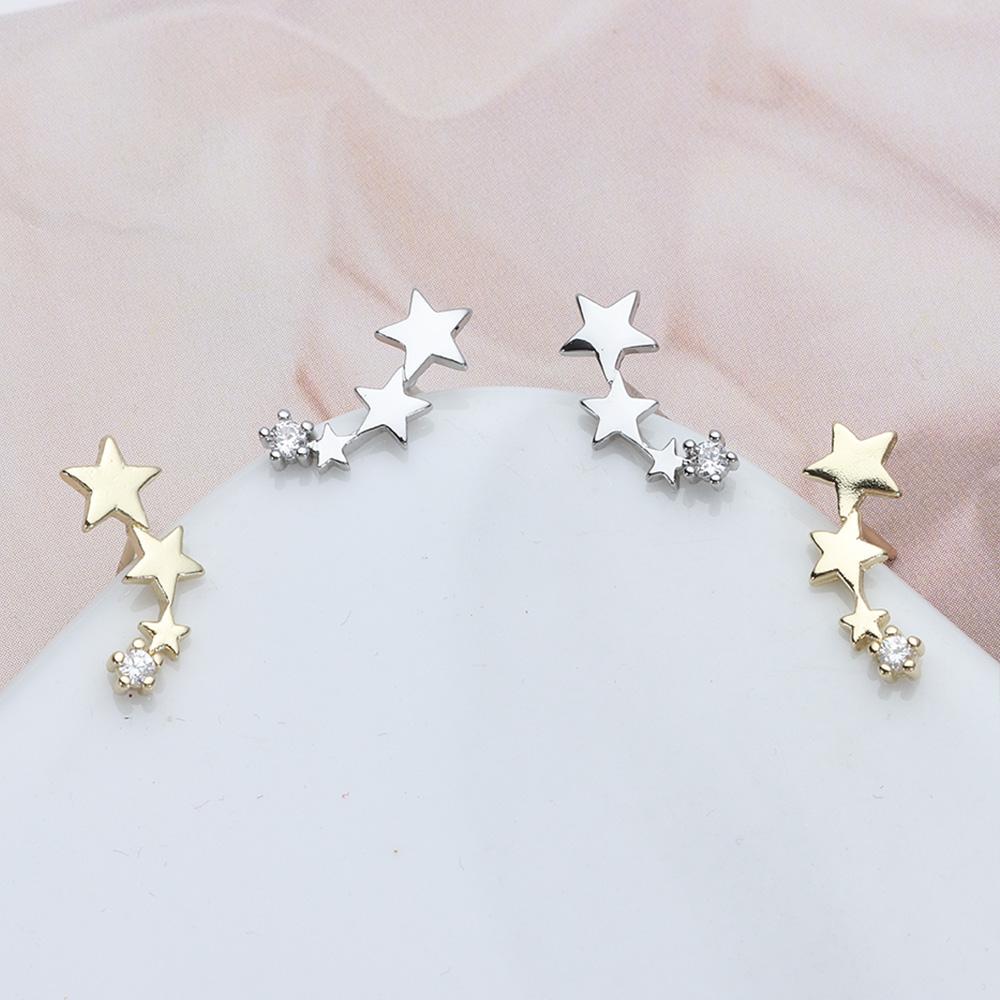 Ювелирные аксессуары для вечеринок Изысканные серьги-кольца золотого и серебряного цвета со звездами Серьги-гвоздики Серебро 925 пробы