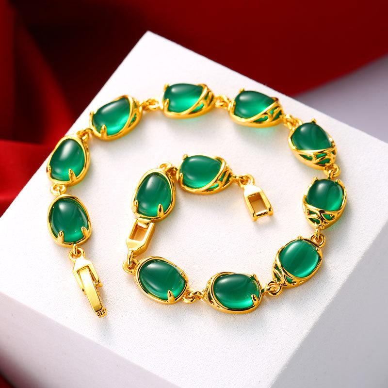 Ювелирные изделия Бабушка Зеленая Лошадь Приходит Нефритовый Шарм Ретро Браслет Женские Золотые Украшения
