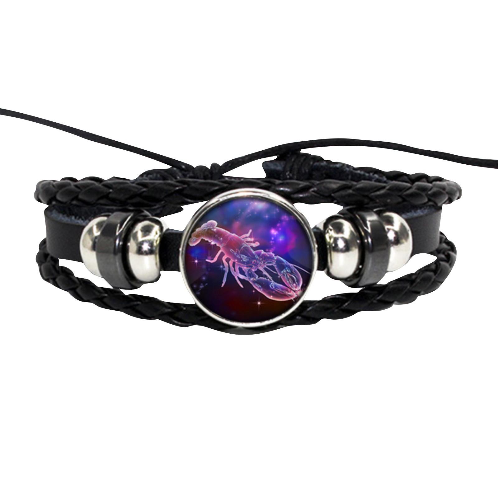 Ювелирные изделия Винтаж Кожаный Веревочный Набор Оплетки Браслет Из Драгоценных Камней Полный Набор Знаков Зодиака One Size