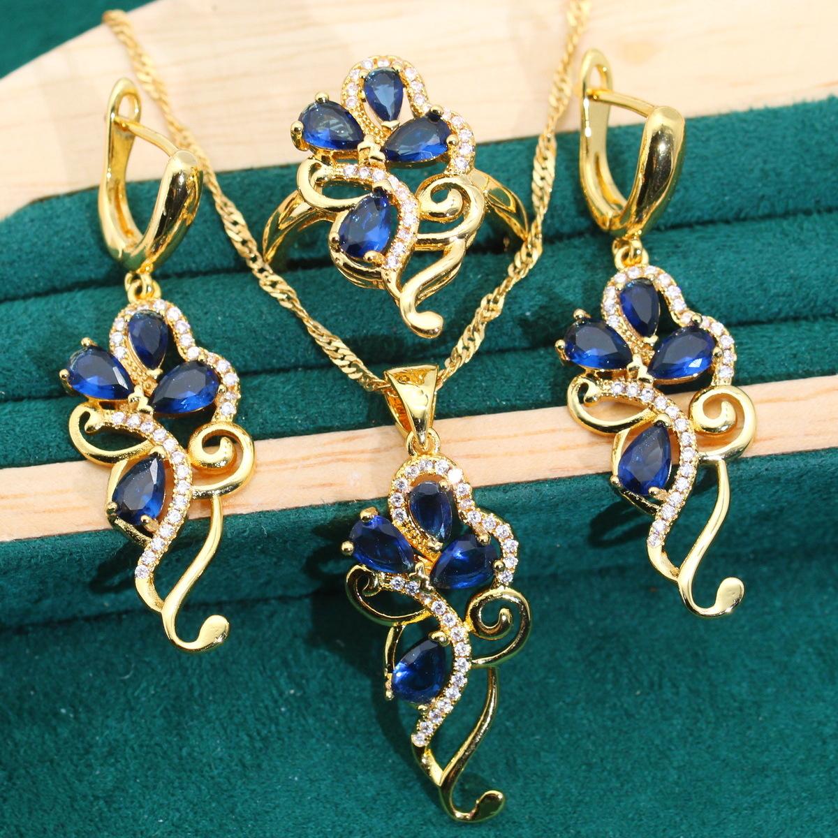 Ювелирные изделия Европа и США Горячие антиаллергенные ожерелье с цирконием, серьги, кольцо, золото 7 yards