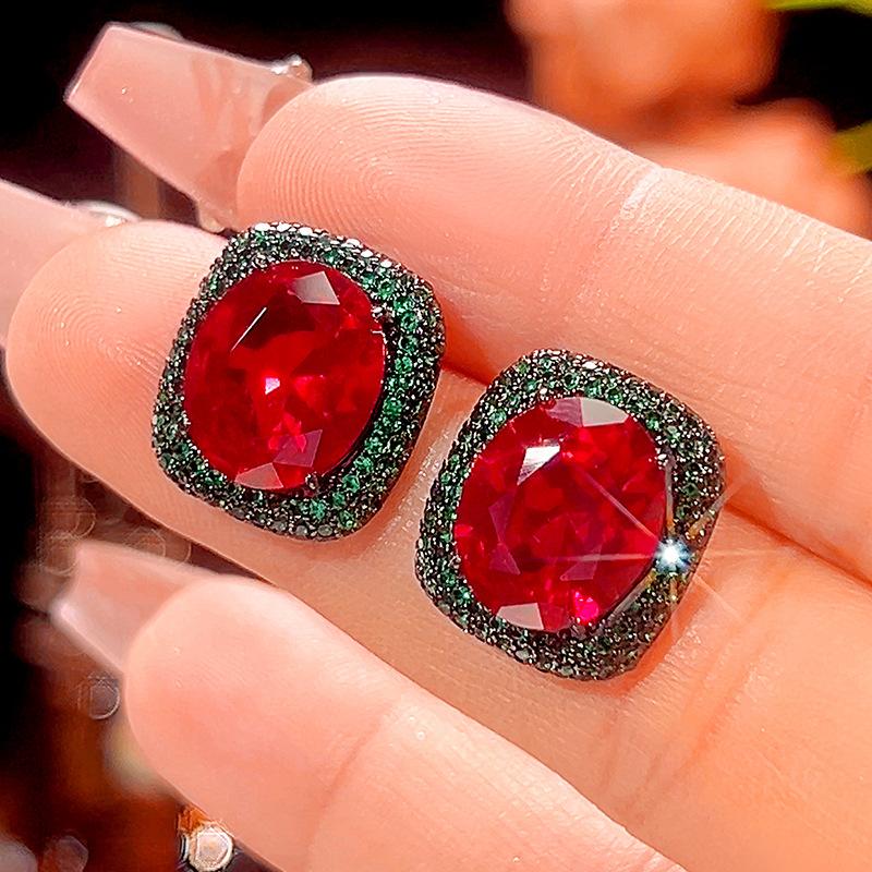 Ювелирные изделия Медное основание Позолоченная Имитация Красного Корунда Черное Золото Легкая Роскошь Комплект Женский Камень 13 * 18