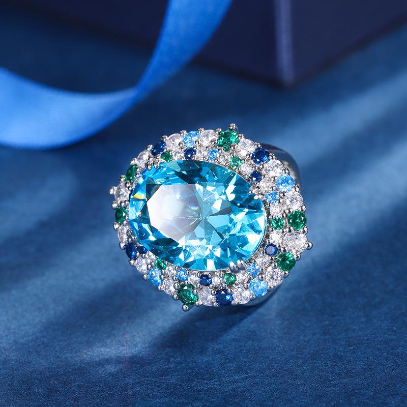 Ювелирные изделия Медное основание Позолоченное Имитация Аквамарина Набор День рождения Подарок Основной камень 13 * 18 8 * 12